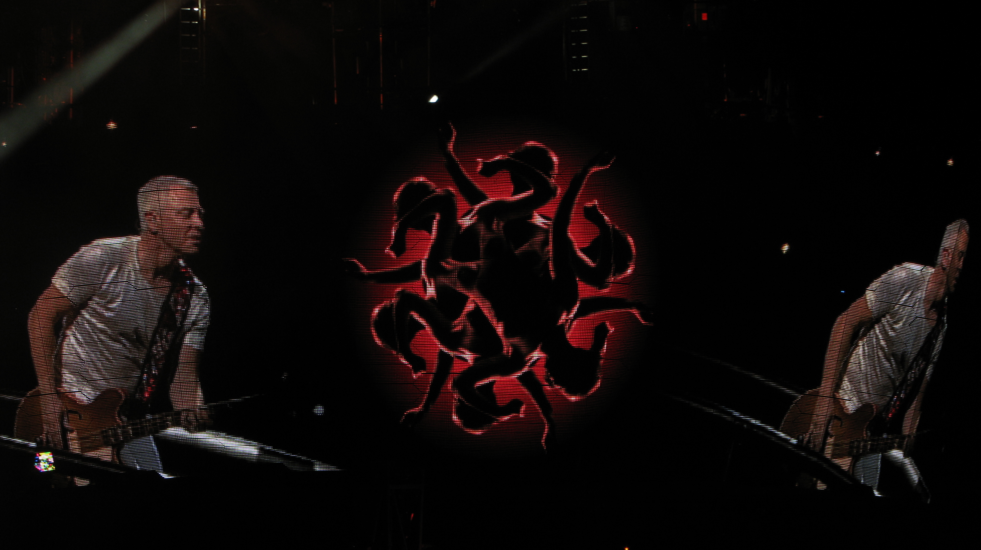 Ao contrário do que havíamos visto no dvd do show de 2009, eles não subiram as escadas, seguiram por baixo do palco para aparecerem já no palco.