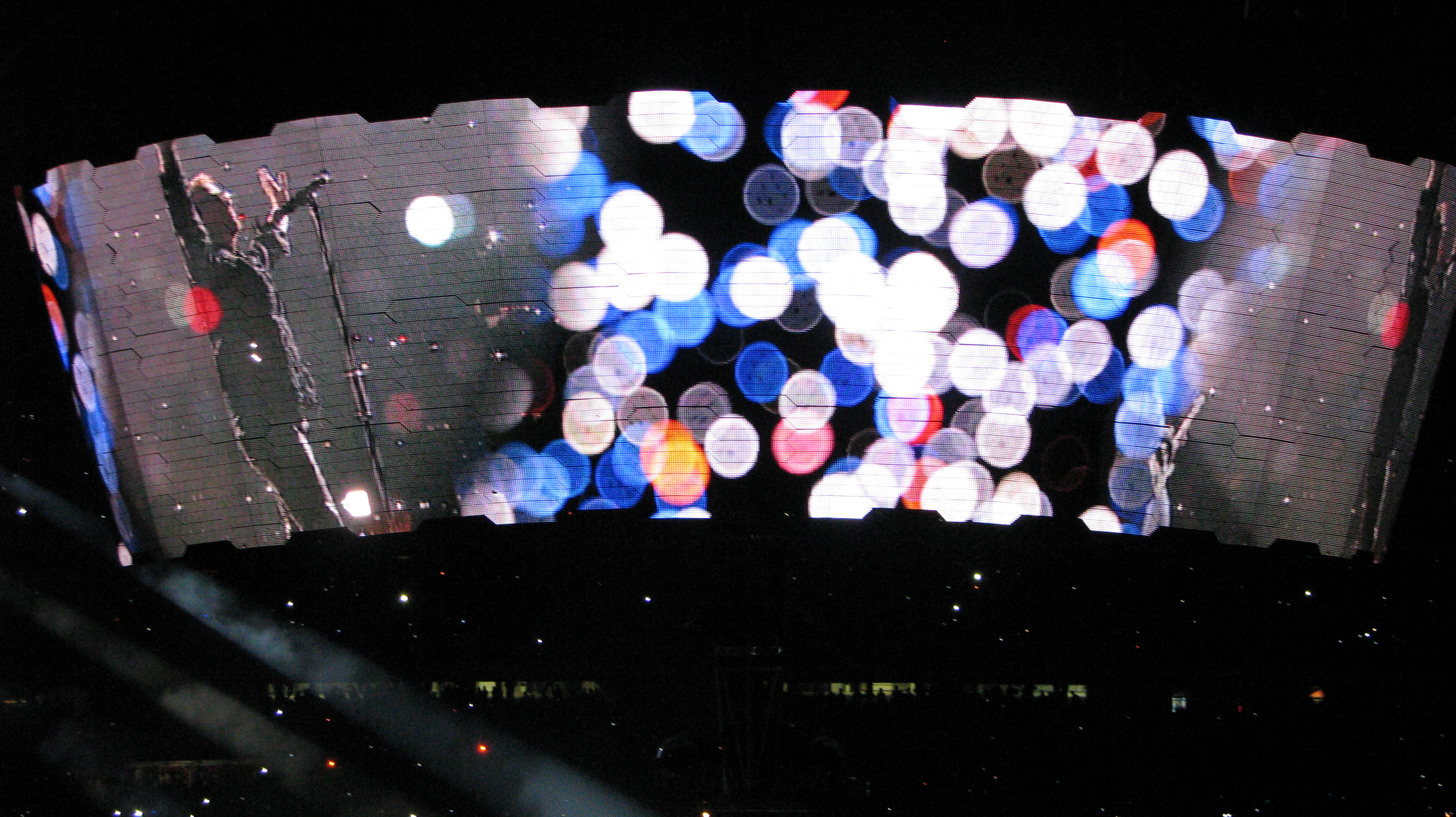 Zooropa foi uma grata surpresa e me mostrou como é diferente do dvd estar lá e sentir todo o efeito visual do telão que se abria e cobria a banda como se fosse um imenso copo luminoso. A potência das luzes era tanta que da arquibancada a sensação era que o telão estava maior, que estava muito mais próximo, como num filme 3d. Segundo li na internet, foi a primeira vez que a tocaram a música completa desde a turnê homônima.