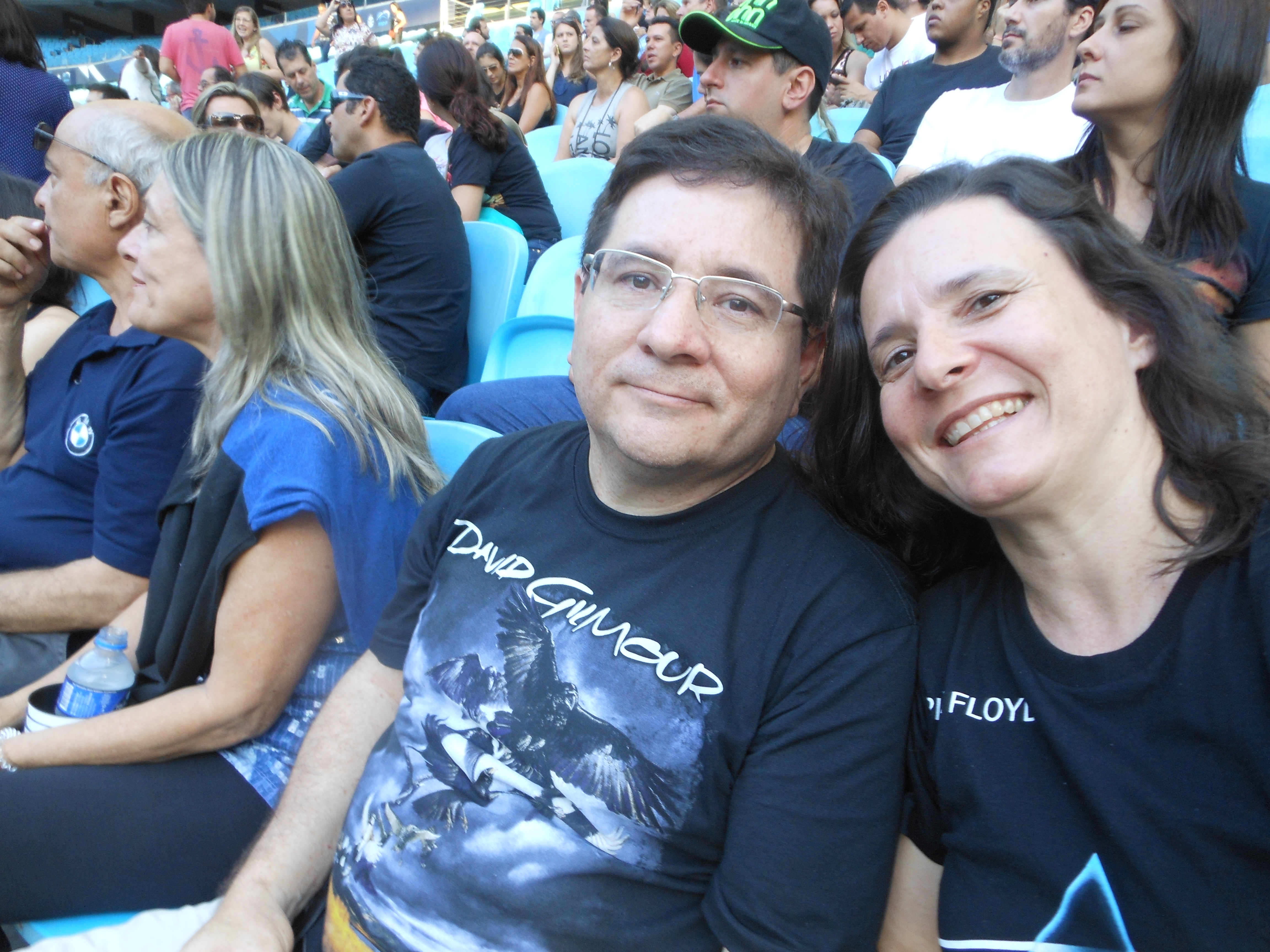 Tradicionais avaliações de quais lugares seriam melhores da próxima vez, visto que o telão ficava bloqueado pelo pano preto do palco, mas até a bateria estava completamente visível. Lamentei que o Jon Carin ficou oculto, só o vi pelo telão, quando cantou.