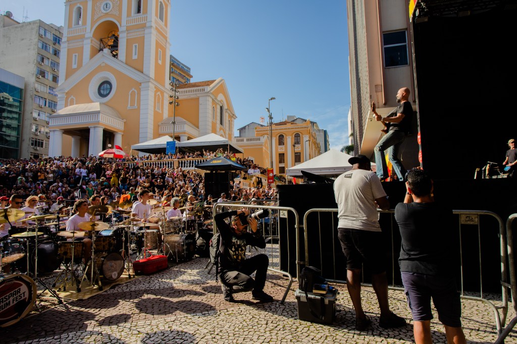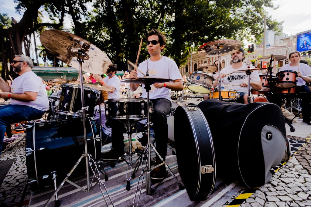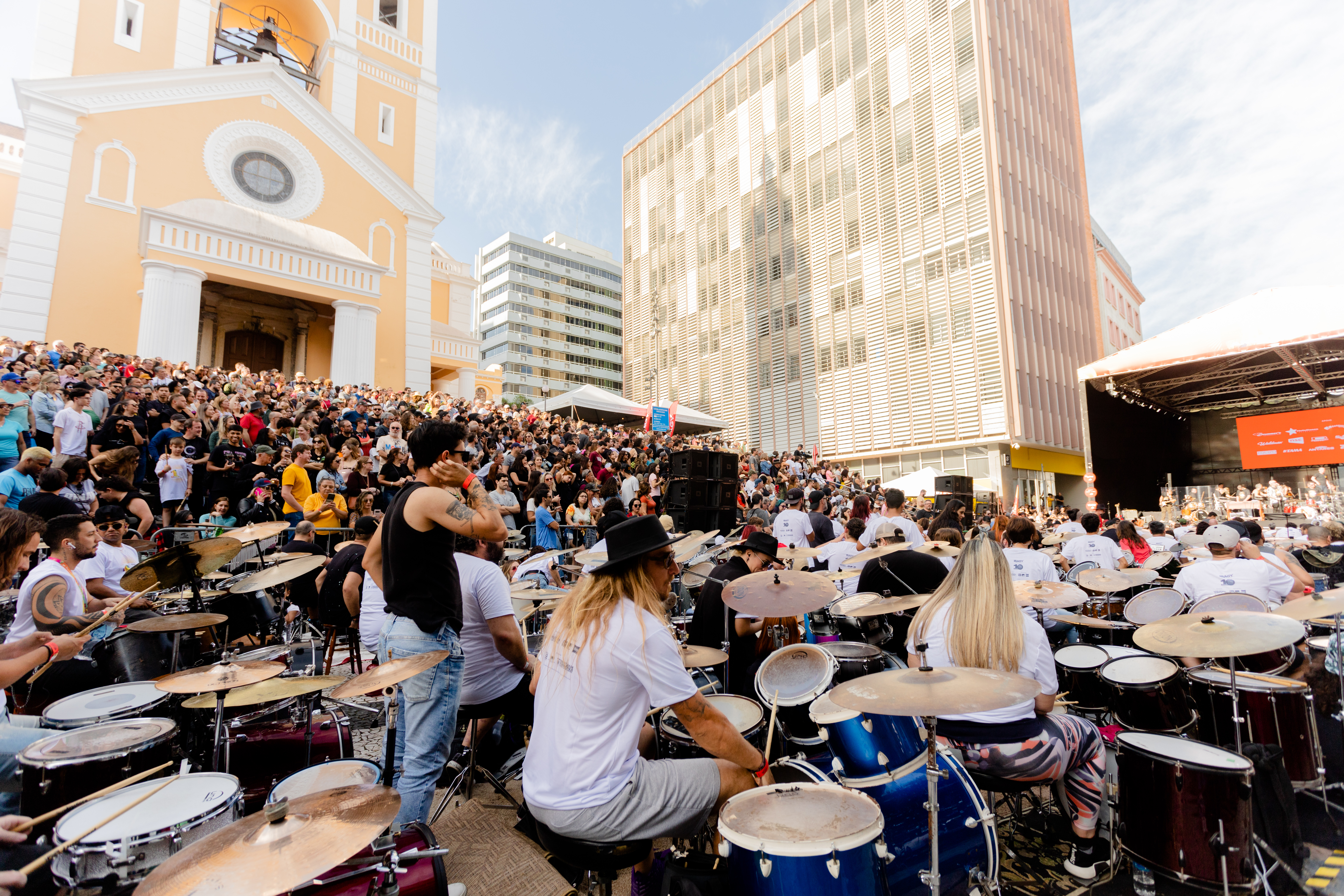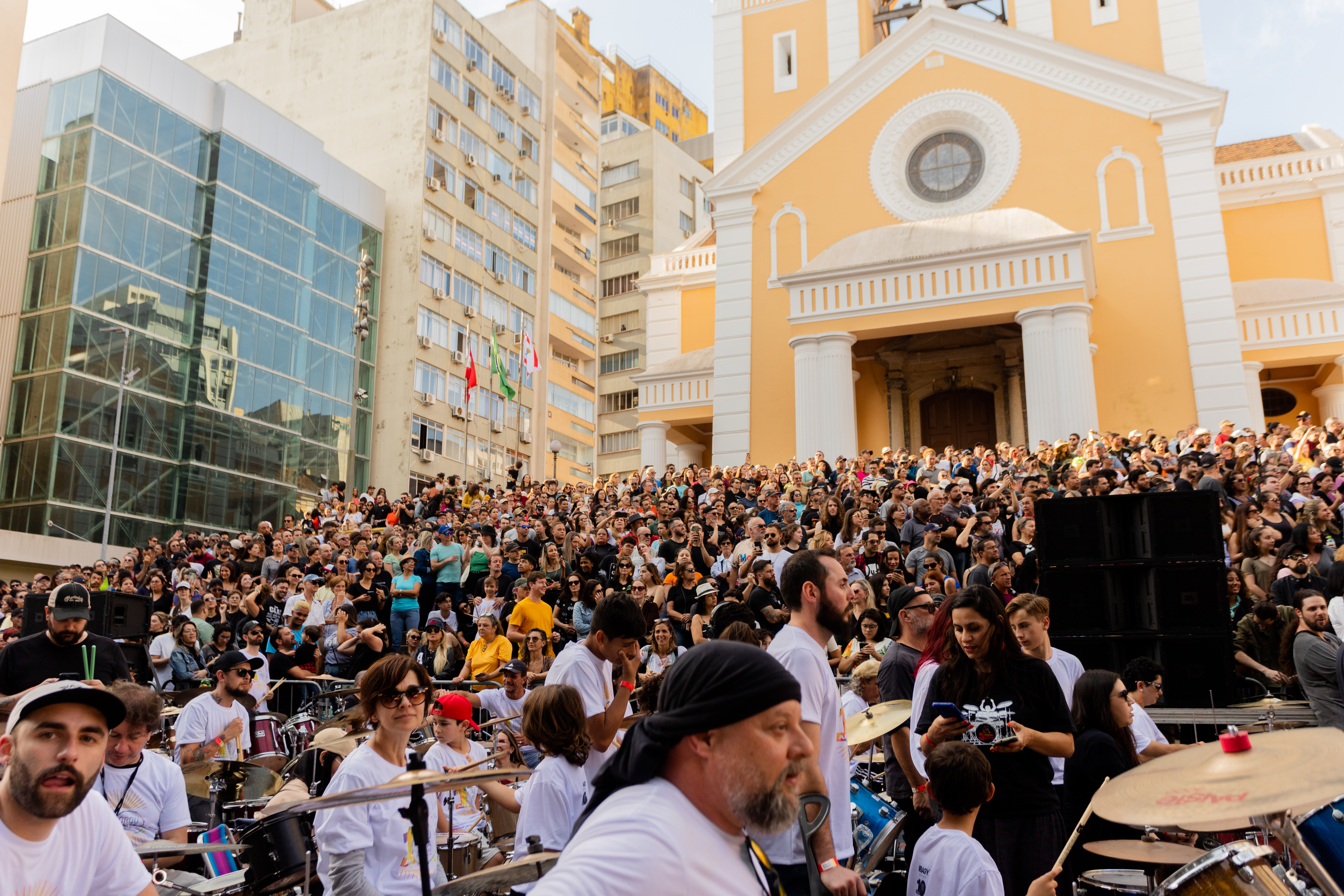 Eis que a décima edição aconteceu no dia do meu aniversário e foi muito interessante, diferente da última vez que participei, quando o palco era montado na própria escadaria da Catedral, o acesso era pela Pe. Miguelinho e o público tinha visão mais livre para os músicos que conduziam a legião de bateristas de ampla faixa etária.