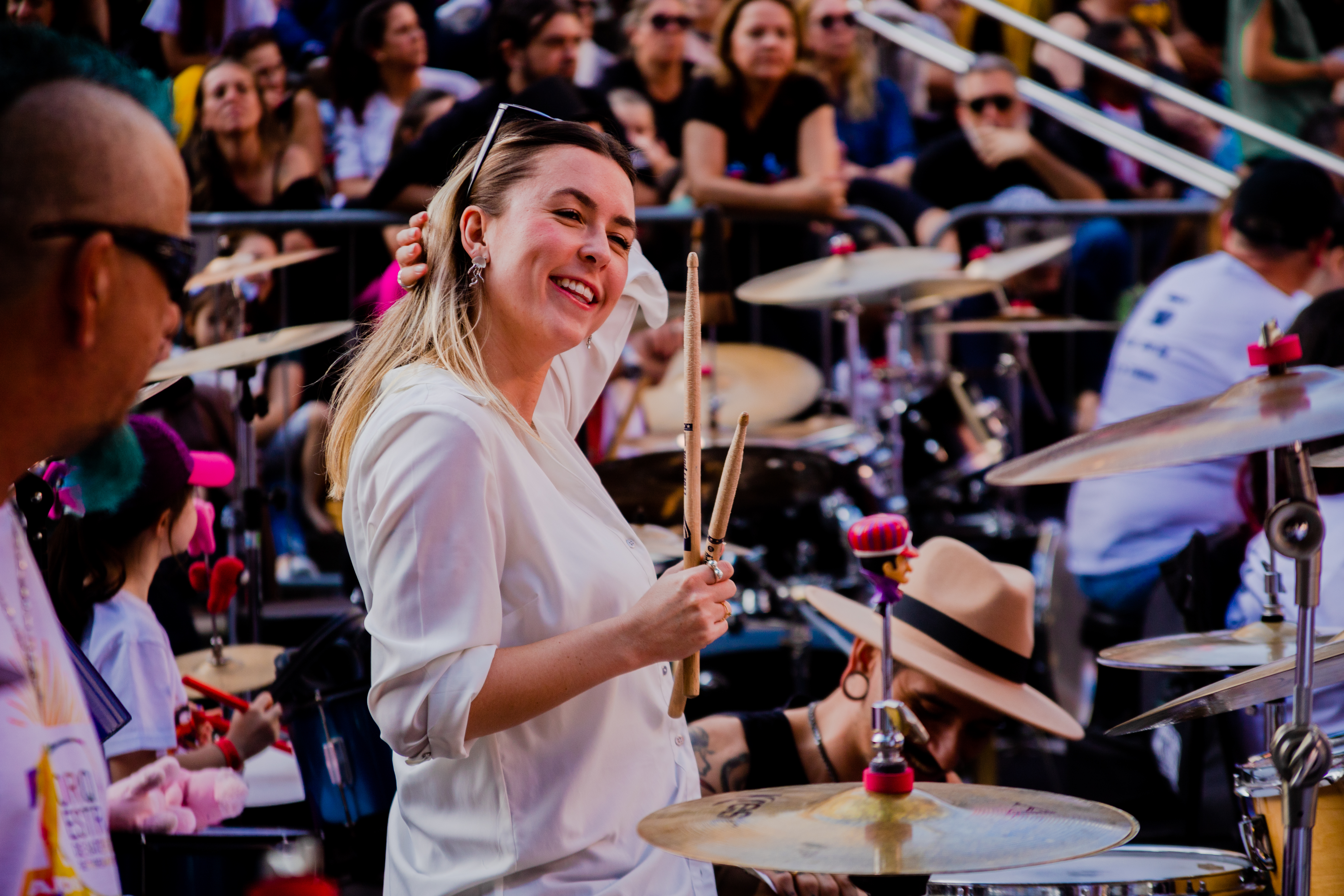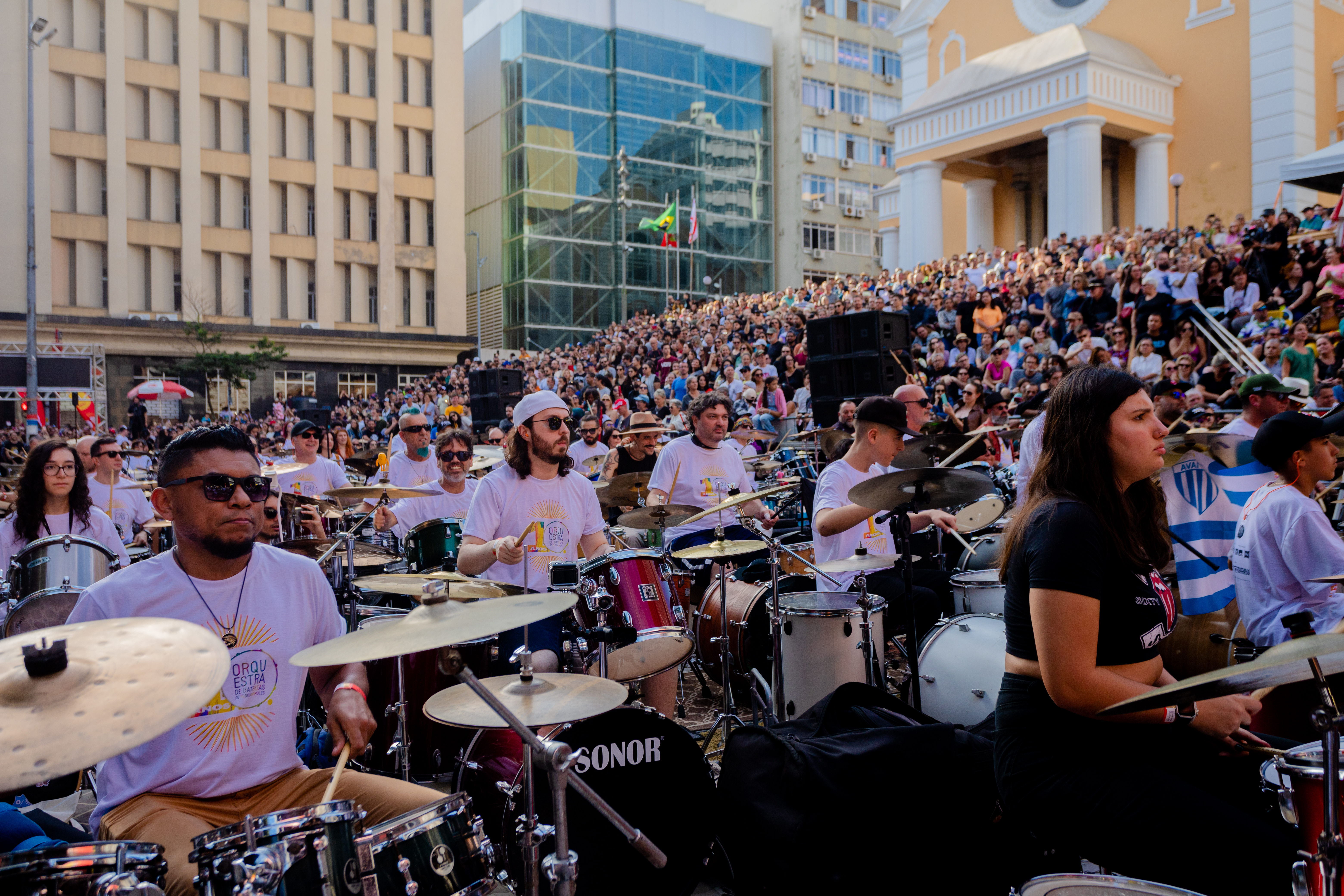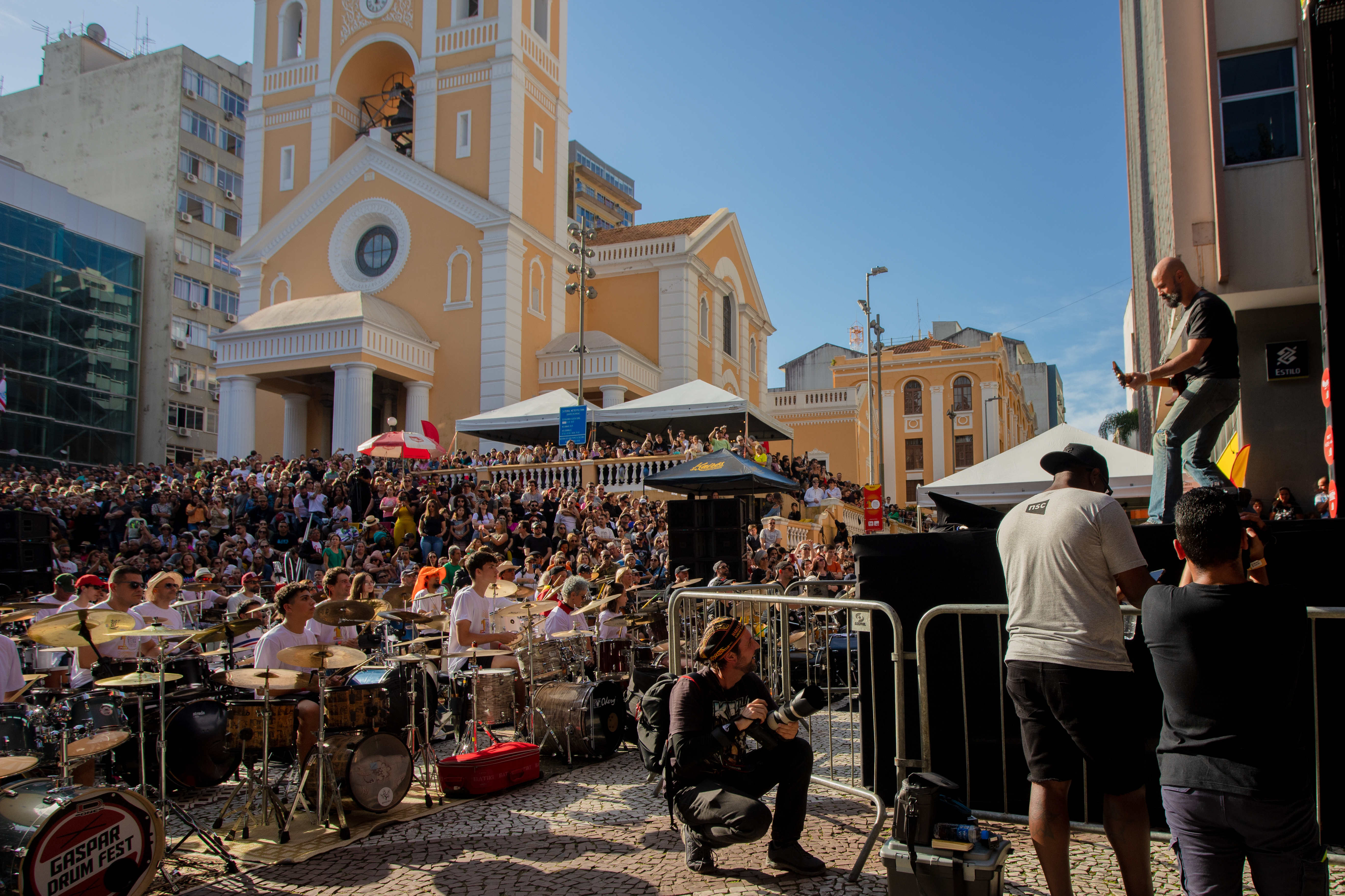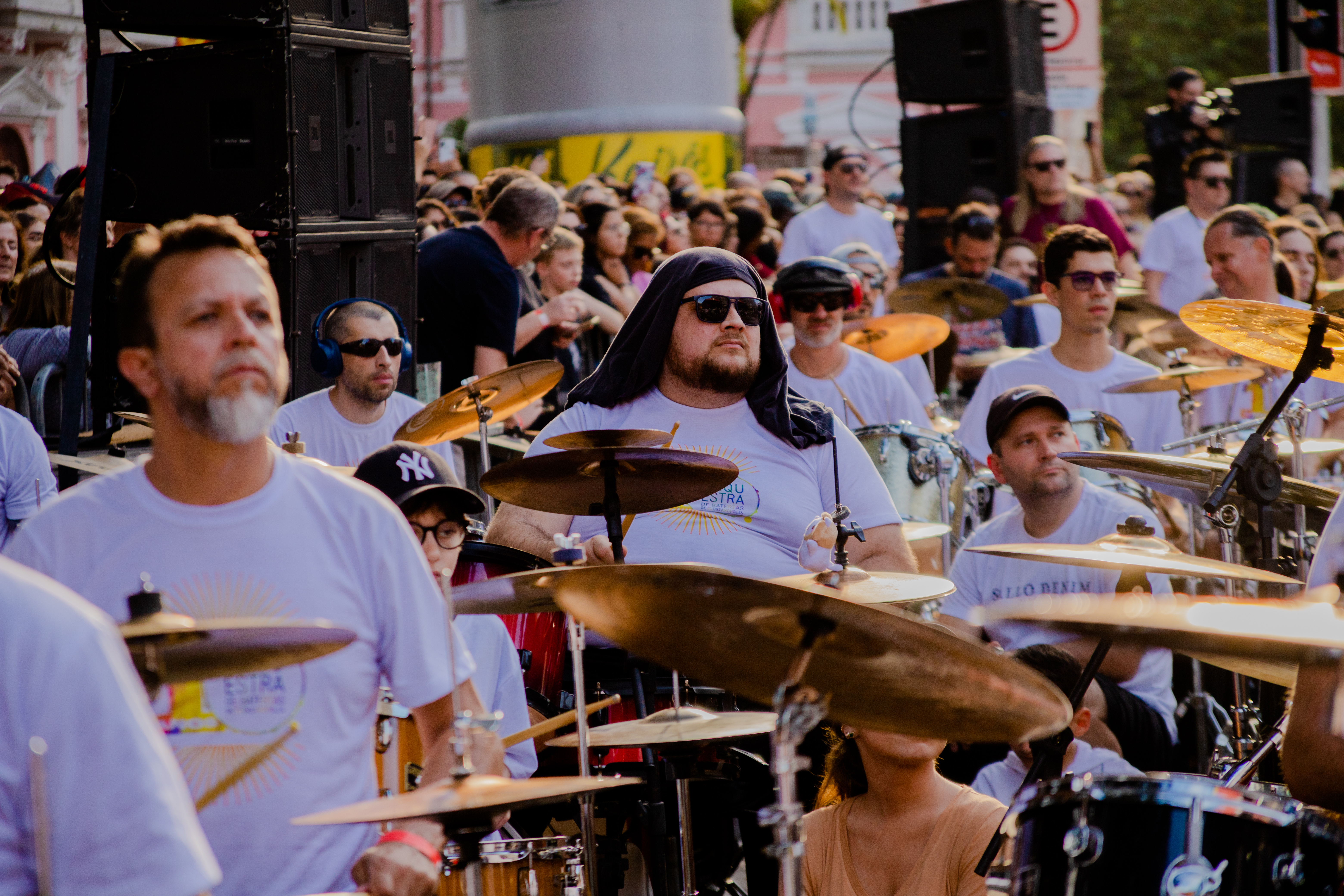 Eis que a décima edição aconteceu no dia do meu aniversário e foi muito interessante, diferente da última vez que participei, quando o palco era montado na própria escadaria da Catedral, o acesso era pela Pe. Miguelinho e o público tinha visão mais livre para os músicos que conduziam a legião de bateristas de ampla faixa etária.